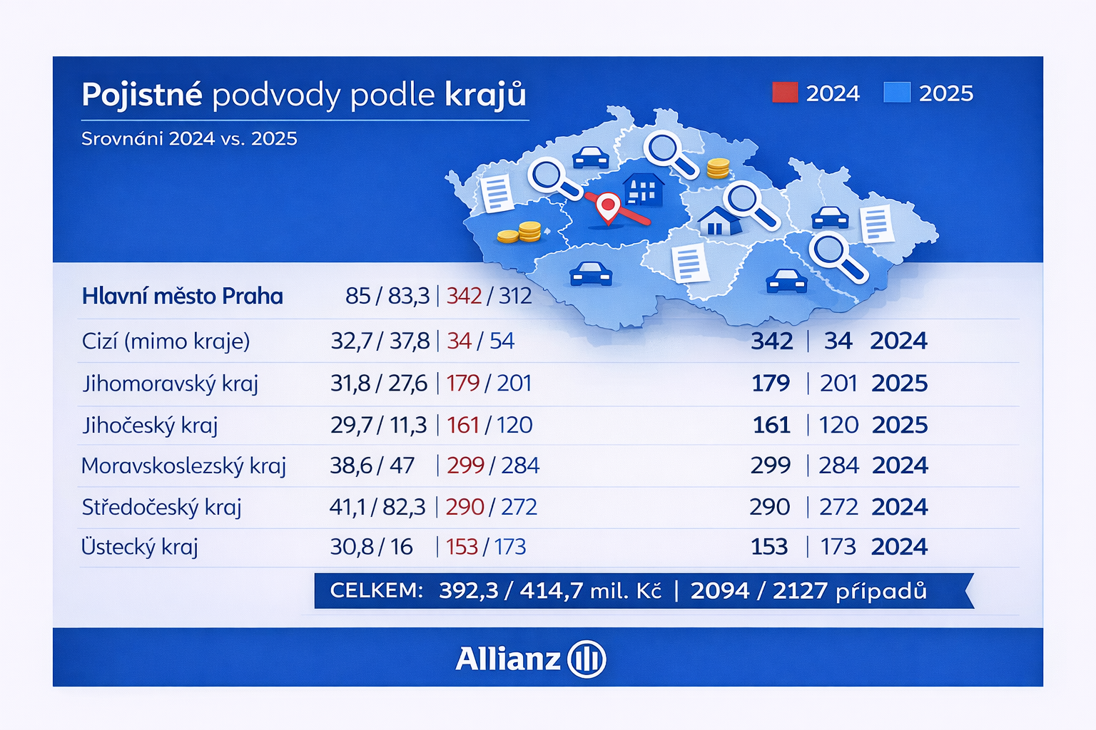 Allianz v roce 2025 odhalila pojistné podvody za téměř 415 milionů korun